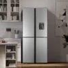 The Hisense 392L Four-Door Water Dispenser Fridge, model H520FI-WD, is a sleek and efficient appliance designed to meet modern refrigeration needs. With a net capacity of 392 litres, this fridge offers ample storage space, making it ideal for families or those who like to stock up on groceries. The four-door design provides convenient access to different compartments, allowing for better organisation of your food items.