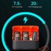 Ultra-Long 20H Recording: Each transmitter’s battery life is 7.5 hours, and up to 20 hours with the charging case. Now, stop worrying about battery level. The RX receiver has a Type-C charging port, making it possible to record and charge the smartphone at the same time.