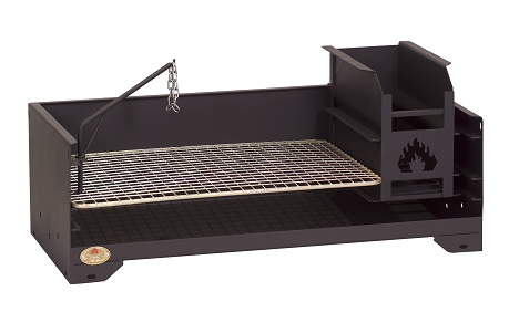 integrated ash pan, poker, potjie arm, ember maker, electroplated grid and grid lifters.