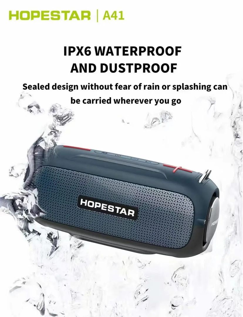 Water-Resistant IP6: Crafted to withstand the elements, the HOPESTAR A41 boasts a water-resistant IP6 rating, ensuring your music continues to play come rain or shine. This feature makes it perfect for beach outings, poolside parties, or any outdoor event where it might be exposed to water splashes.
