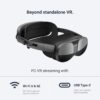Made for heavy-duty graphics. Boasts 3840 x 1920 combined resolution and 19 pixels per degree. Up to 110 field of view and 90Hz refresh rate in a remarkably compact form factor.
