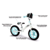Huffy Kids Balance Bike Who Needs Stabilisers?! Balance bikes are the ideal starting point for your childs cycling adventures. Huffy balance bikes are the perfect opportunity for young kids to learn to balance and ride. Scooting along on this 12 Inch / 30cm. balance bike will help develop your childs motor skills and balance, with stride lengths increasing with confidence. Featuring a cool BMX inspired race plate will also encourage your child to have so much fun. Real air filled wide tyres makes it easier balance and grip to manoeuvre across different surfaces. The deep tyres allow for extra comfort against bumps outside. With adjustable seat height from 36cm to 42cm. Maximum weight capacity of 27 kg.