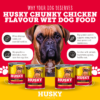 Husky’s Chunky Chicken Flavour is crafted to be big on meaty Flavour with added benefits, perfect as a standalone meal or mixed with dry dogg food pellets. Known for leading in dog food taste, it offers delicious variety and essential nutrition.