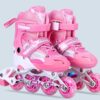 Indoor & Outdoor Adjustable Inline Skates with Illuminating Wheels – Pink – L