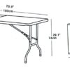 Capable of use both indoors and out, the tables are made of high-impact polyethylene, which is stronger and lighter than wood. Easily stored once folded in half, the tables are stain and fade-resistant, easy-to-clean and won?t chip, peel or crack. A weather-resistant powder-coated frame with easy-lock leg braces keep things in place as everyone gathers around for a meal or other table top entertainment.