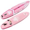 Take it anywhere and enjoy the outdoors with confidence. Very stable board for beginners and advanced, made for short or long trips in normal and more challenging conditions. Imitation wood design with gray accents. 10’6” foot board, 320 x 81 x 15 cm.