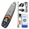 Introducing our Inflatable SUP, perfect for any adventure! The board (3.2m/10’6”) includes a pump, paddle, fins, and backpack carrying case for easy transport. With a wood grain finish, this board is both durable and stable.