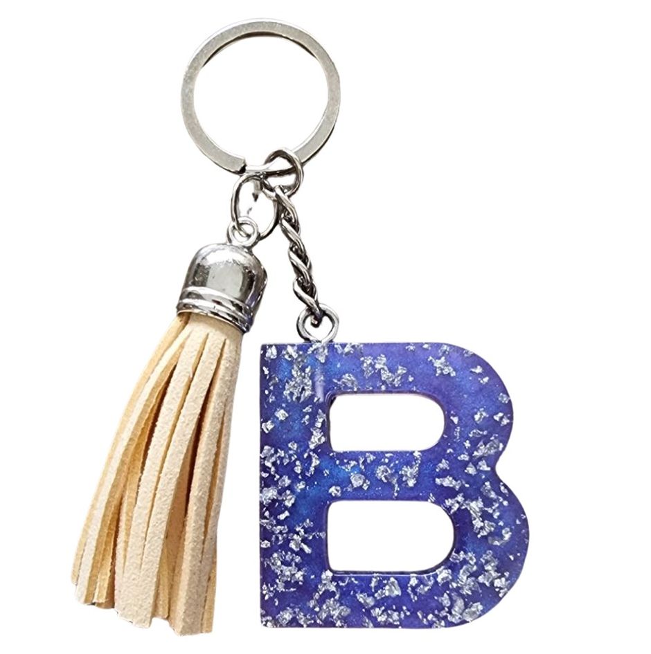 – Silver leaf is added to semi-see-through misty lavender keychains.