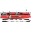 1x Kayak, 2x 86 inch aluminum paddle, 1x Intex high-output pump, 1x Repair Patch