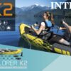 The Intex Explorer K2 Kayak is sporty and fun with a streamlined design for easy paddling. The bright yellow color and sporty graphics makes the kayak highly visible in the water. Great for experiencing lakes and mild rivers with a friend, this Sports Series kayak is perfect for two adults. Lightweight and compact, this kayak is a snap to assemble, and allows you to take the fun of kayaking wherever you go. Made with rugged vinyl construction, this sturdy kayak has an inflatable I-beam floor for comfort and rigidity. A removable skeg provides directional stability, while two adjustable, inflatable seats with backrests are included for comfort. Quick inflating or deflating is a breeze with a Boston valve on each side. A grab line and grab handle at each end is provided for your convenience, as well as a U.S. Coast Guard I.D., and a repair patch kit. The Explorer K2 Kayak provides added accessories including: two 86in aluminum oars and an Intex high-output pump for easy inflation and deflation.