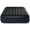 The inflatable queen airbed for home use engineered with fiber-tech construction. It has a built-in, high-powered electric pump for hassle-free inflation and deflation. it inflates in approximately 3 minutes to the desired firmness. There is a built-in pillow designed to provide great support, thus, no need to use extra pillows. A duffle bag is included for easy storage and transport.