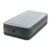The Elevated Airbed is covered is plush flocking that is soft to the touch, and the horizontal air chambers provided added stability and support around the entire bed. For extra convenience, this bed comes with a powerful built-in electric pump for fast inflation and deflation.