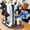 Playstation 5 multifunctional cooling stand with LED display for 2 controller charging docks, media remote, headset stand and space for 15 game covers.
