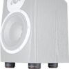 The ISO-PUCK upper flange “suction cup” design adheres to the underside of the cabinet making the upper isolator live with the speaker, while the lower isolator anchors to the supporting surface. All the energy is managed within the core of the ISO-PUCK isolators which are carefully tuned to provide superior isolation and control while remaining on-axis.
