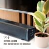 It has USB, HDMI, and AUX In ports for flexible connectivity with various audio sources.