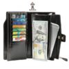 Multifunctional with 21 card slots(including 1 id window), 3 full-length bill compartments, 1 snap cash pocket and 1 zipper phone case