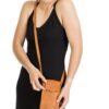 Complement your chic style with this leather phone bag. Sleek and structured, it has a shoulder strap and a flap that reveals a deep and spacious inner, big enough for a phone, purse and a lipstick