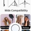 Dimmable Lighting: The ring light comes with adjustable brightness settings, allowing you to control the intensity of the light according to your preferences and shooting conditions. This feature enables you to achieve the desired lighting effect for your content creation.