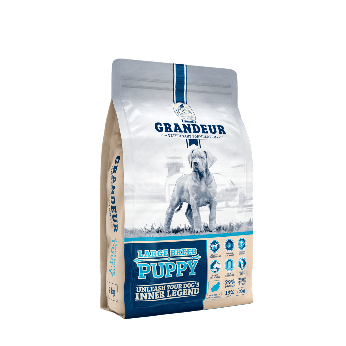 JOCK Grandeur Large Breed Puppy is a scientifically formulated diet that caters for the nutritional requirements of large and giant breed dogs in the first 8 months of their life.