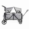 The Kidokar Cruiser takes comfort and style to the next level, with a push and pull handle, built-in seats, and an additional baby car seat adapter for added convenience. Ideal for families on the move, the Cruiser features a snack tray with cup holders, two canopies, and extra cup holders for your little one’s beverages.
