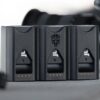 – Store and charge three camera batteries simultaneously at lightning speeds