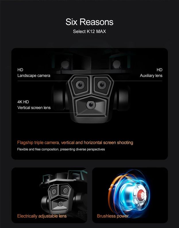 K12 - 4K HD Drone With Three High-Definition Cameras - Black & Blue
