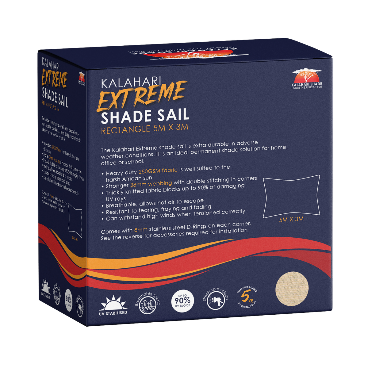 Kalahari Extreme Shade Sail Rectangle 5x3m – Charcoal