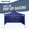 A contemporary design with 3 sidewall panels, the Karrimor 3m x 3m Gazebo is the perfect accessory to take along on any adventure. Easy to assemble with a pop-up frame, the gazebo is set up within minutes. Made from durable material and a steel frame, it offers shelter on long hot summer days. A carry bag is included to make transporting the gazebo easier. Dimensions: 300 x 300 x 307 cm