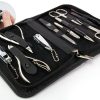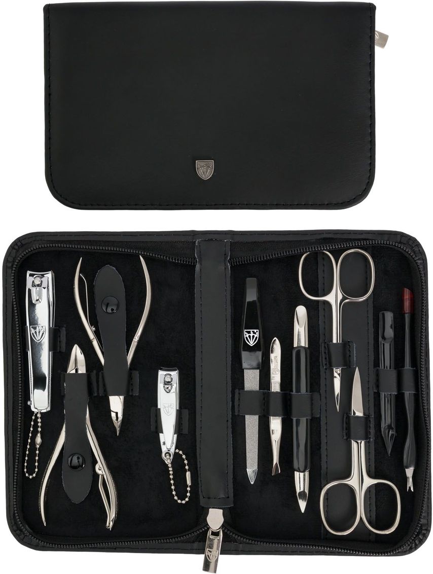 Kellermann 3 Swords Manicure and Pedicure Set in a black genuine leather case, with the following content: