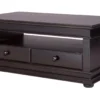 Imbued with old-world charm and an antique-inspired design, the Kent Coffee Table instantly captivates as a classic centerpiece for any living area. Its exquisite craftsmanship is showcased through intricate bevelled detailing, while the rich dark mahogany veneer brings a sense of opulence and sophistication to your home decor. Offering both style and functionality, this coffee table boasts additional shelving and drawers, providing ample storage space for your essentials. With its timeless appeal and versatile design, the Kent Coffee Table is sure to elevate the aesthetic of your living space with its timeless elegance and practicality.
