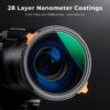 K&F Concept’s Nano-X Series of filters are crafted for the demands of UHD capture. When you want 8k resolutions, use a filter that is designed for uncompromising quality. This Nano-X filter is precision engineered from Japanese optical glass and is specifically designed to meet the high-resolution capture abilities that modern digital cameras are capable of. They are made up of 28-layer nano-coating technology and a double-sided polishing process. The most prominent of these coatings, is the anti-reflection coating, which effectively reduces internal reflection problems such as flares and ghosting. Another benefit of these coatings is that they increase the effective light transmittance through the filter. These coatings allow the filters to achieve high-definition picture quality and be waterproof. It also helps them to have a high level of scratch resistance and grease does not adhere well to the surface. Fingerprints wipe off very well instead of just smearing.