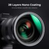 K&F Concept’s Nano-X Series of filters are crafted for the demands of UHD capture. When you want 8k resolutions, use a filter that is designed for uncompromising quality. The filter is crafted from high precision Japanese optical glass. The lens is treated with a double-sided polishing process which ensures high-definition image quality at up to 8k. The filter also undergoes a double-sided multilayer coating process where 28 layers is applied to the lens. Coatings effectively reduce reflections, increase effective light transmittance through the filter and avoids ghosting. The outer layer coating is hydrophobic to help repel water and are scratch resistant ensuring the longevity of your filter. The filter glass is larger than the threaded mount to further help reduce vignetting, even when using a wide-angle lens. It also helps give a filter effect which is consistent over the entire frame.