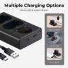 The camera battery charger features dual charging ports, allowing you to simultaneously charge two NP-W235 style batteries. This innovative design significantly reduces charging time, ensuring that you spend less time waiting and more time capturing those important moments.