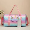 The girls duffle bag with cute rainbow unicorn printed design makes the girls fall in love with it quickly, the fabric is safe and water resistant(This will protect your inner items from drizzle, while not in heavy rain.) perfect birthday/Christmas New Year gift for girls.