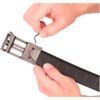 The heavy-duty ratcheting gun buckles (4.5 cm x 6 cm) are constructed of either high-grade, zinc alloy, with an electroplated gunmetal or black powder-coat finish, or solid stainless steel (all contain nickel). The buckle mechanism features the Kore design.