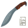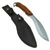 The Kukri 95 features a curved kukri blade that is ideal for skinning, gutting and deboning animals, as well as debarking wood and clearing brush. The blade is made of durable steel and has a sharp edge that can handle tough tasks. The handle is made of wood and has a full-tang construction for strength and balance. The handle also has a hole for attaching a lanyard for extra security. The knife comes with a beautiful pleather sheath that protects the blade and allows for easy carrying.