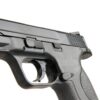 It is very accurate and consistent, the double-action-only trigger makes every trigger pull the same as the last. Although there is manual safety, the nature of the trigger pull means that you can holster it with the safety disengaged and still have a low chance of accidental discharge. Because this is a fixed slide pistol, there is no wastage on the gas.