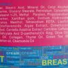 Ingredients : Water, stearic acid, mineral oil, cetyl alcohol, glycerine, glyceryl stearate, petrolatum, ceteareth-6, cetearet h-25, methyl paraben, propylparaben, carbomer, xanthan gum, sodium hydroxide, fragrance, menthol, tetrasodium EDTA, lipofirm LCW (bioflavonoids, algae extract, dimethicone copolyol, centella asiatica extract carnitine caffeine tea salicylate and D-panthenol) oil ring, olive oil, sage oil, collagen, thyme oil, green tea oil, dandelion oil, chamomile oil