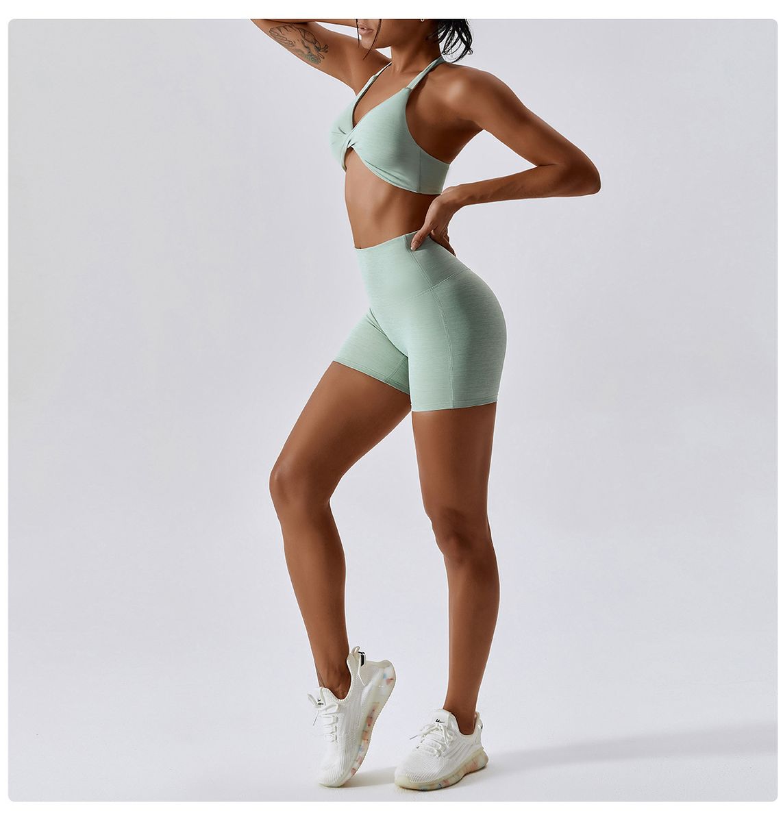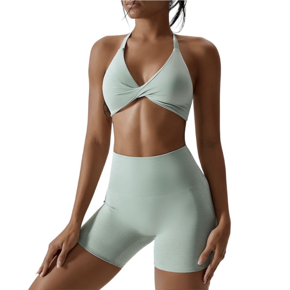 Who said gym clothes have to be dull and boring? Say goodbye to basic and hello to bold with our gym-wear set. The trendy twist detail in the front adds that extra touch of flair to your outfit, making you the trendsetter in your fitness circle. Embrace your individuality and show off your personality while you sweat it out in style.
