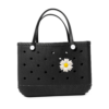 Ladies Beach Tote Bag PVA Extra Large w/ Flower Charm - XL - Black