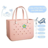 Ladies Beach Tote Bag PVA Extra Large w/ Flower Charm - XL - Pink