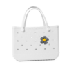 Ladies Beach Tote Bag PVA Extra Large w/ Flower Charm - XL - White