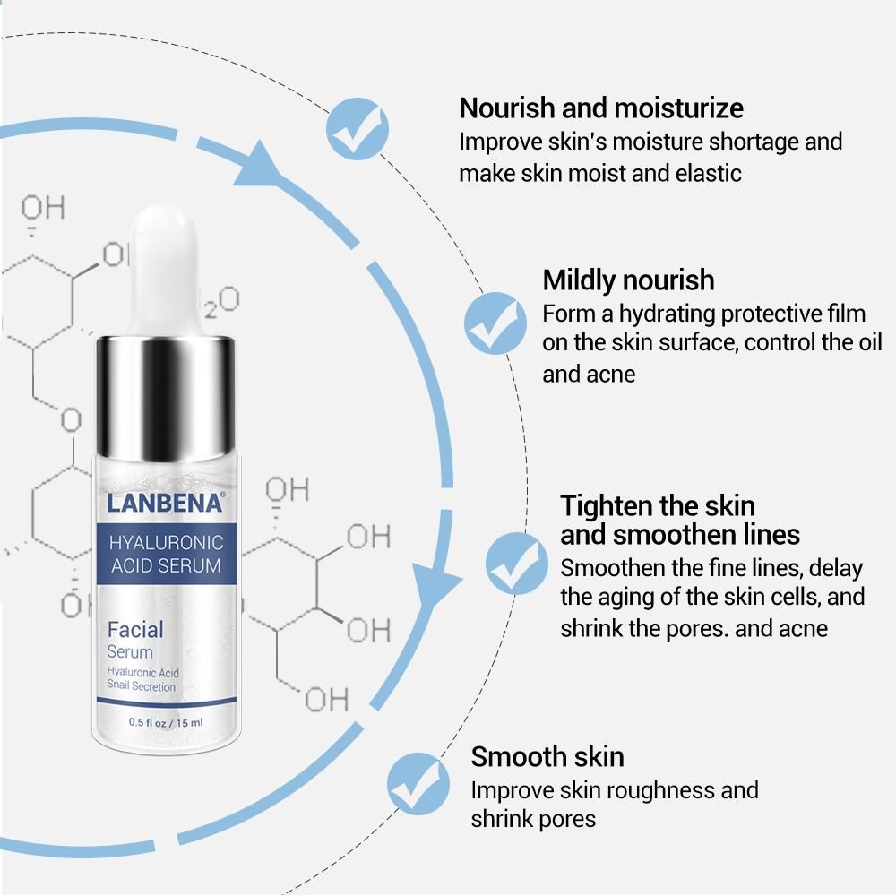 Experience the multi-functional benefits of Lanbena Hyaluronic Acid Serum for radiant and hydrated skin.