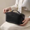 Large Capacity Faux Leather Cosmetics Bag with 2 Makeup Sponge Blenders - Black