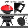 Easy To Use & Clean: The ash leak under the bowl and the ash catcher become the best choice to be a one-touch cleaning system. You just need to rotate the ash leak to move the ash down into the ash catcher for easy ash disposal and cleaning. The durable wheels make this charcoal BBQ grill to be easy to move and transport for outdoor picnic tailgate camping.