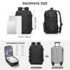 Large Travel Backpack Women Men with USB Charging Port Airplane Approved – Black