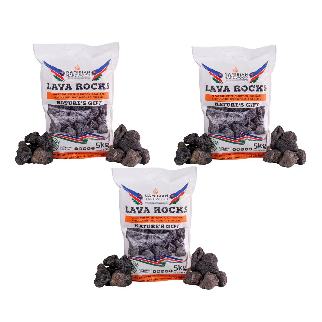 Premium Volcanic Rock. This lightweight stone can range from dark black to reddish-brown colouration. The porosity makes it suitable for use as aquarium filtration as the tiny holes provide surface area for beneficial bacteria to colonize. Also great for gas braais. Lava rocks is long lasting and does not actually burn away like charcoal. It glows like charcoal and by vaporizing drips, gives the food the unmistakable chargrilled taste.