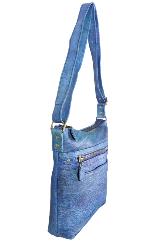 Elevate your style with our exquisite unisex leather sling bag, designed for those who value both aesthetics and practicality. Crafted from premium cow leather, this bag boasts an antique buff finish in a striking blue, red or green hue, making it a standout accessory for any outfit.
