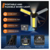 The LED work light with stand has two buttons, the left button to adjust the main light, and the right button to adjust the COB light source plate, easy to operate,