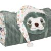 This weekend-sized bag is ideal for trips for young, medium and old people! And why not a diaper bag for trendy moms or a sports bag for crazy teenagers? Featuring its famous corduroy and an ultra-resistant jute canvas bottom, the Chillos the sloth weekend bag is the essential accessory for carrying all your belongings! Inside, find the pretty pattern of Chillos the sloth as well as an elasticated pocket. The duffel bag is green and beautifully colourful.